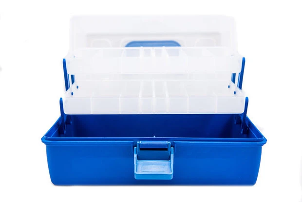 2 lagen met verdeelvakjes voor uw klein materiaal en onderaan het koffertje plaats om het grotere materiaal in op te bergen.